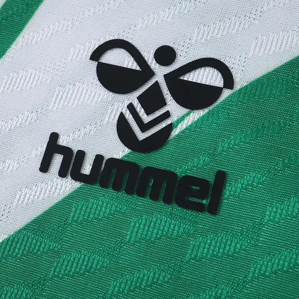 La nueva camiseta titular del Real Betis trae el tradicional listrado vertical en verde y blanco, que continúa en las mangas. El tejido presenta un patrón brillante de la marca, que ha sido utilizado esta temporada para recordar los años 90. 🦁⚪🔵